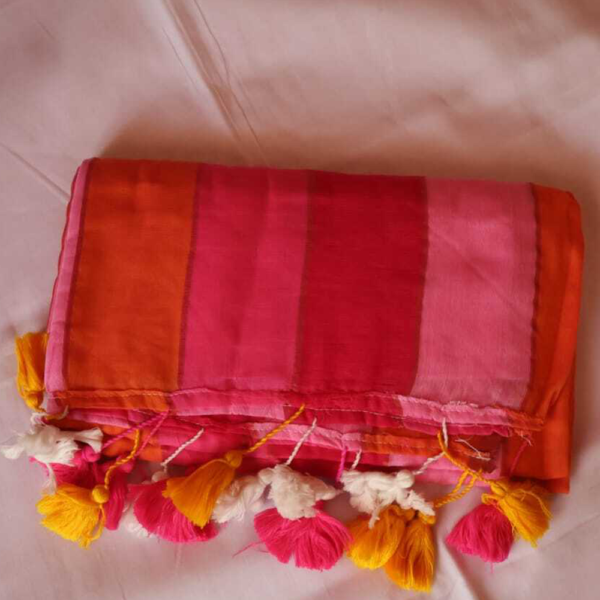 Crafted from premium mulcotton, this saree features a stunning mix of colors, creating a lively and graceful look. The lightweight and breathable fabric ensures all-day comfort, making it ideal for casual outings, office wear, or festive occasions. With its soft texture and beautiful drape, this saree combines tradition with contemporary charm, making it a must-have for those who love vibrant yet elegant attire.