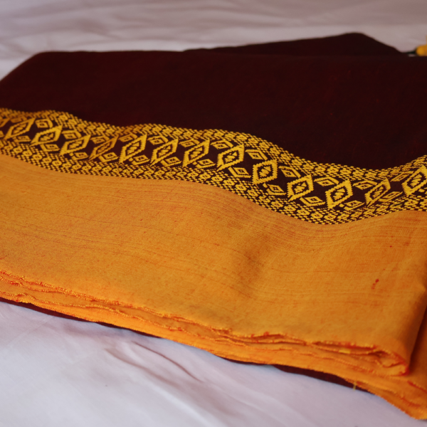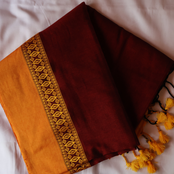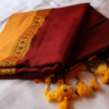 Drape yourself in the timeless charm of our Pure Cotton Maroon with Yellow Saree. Made from 100% pure cotton, this saree offers a perfect blend of comfort and sophistication. The rich maroon base, beautifully complemented by yellow accents, creates a striking contrast that enhances its appeal. Its breathable and lightweight texture ensures all-day ease, making it ideal for office wear, casual outings, or festive gatherings. With a graceful fall and natural cotton weave, this saree is a must-have for those who appreciate classic elegance with a touch of vibrancy.